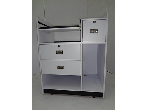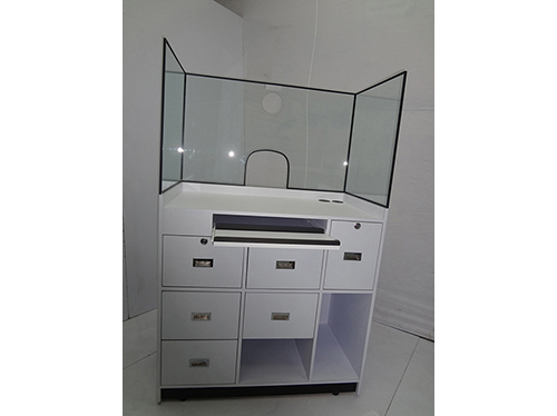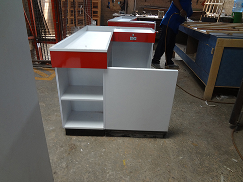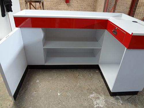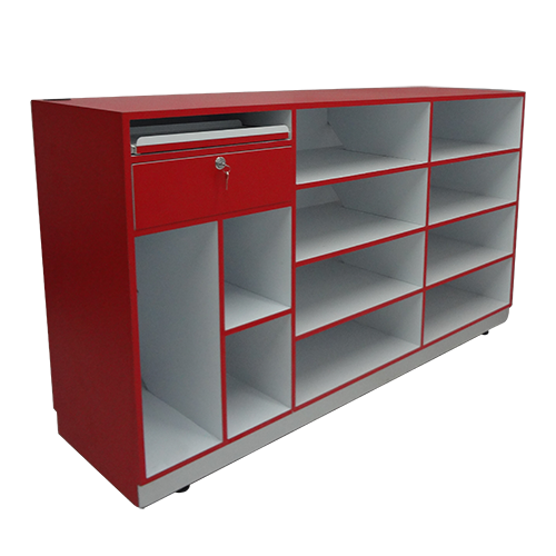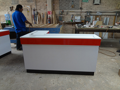 La segunda, pero también muy importante, es utilizar los mostradores en un diferente enfoque, como motradores de cobro colocando en ellos equipo como cajas registradoras, impresoras, computadoras o cualquier otro equipo que necesite tener a la mano. Para ello utilizamos los materiales resistentes que brindarán un soporte seguro para su equipo y que también puede personalizar con los acabados adecuados para su negocio.